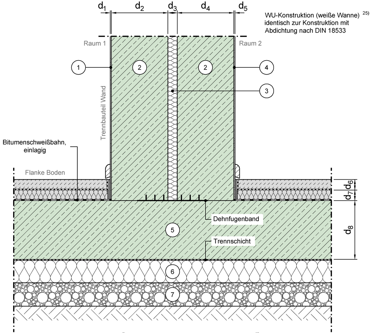 Raum über Bodenplatte, Bodenplatte durchgehend