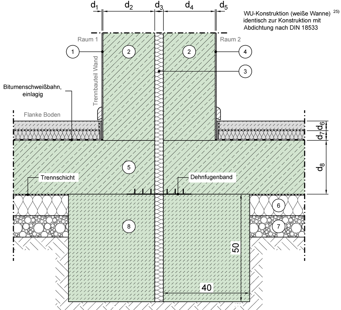 Raum über Bodenplatte, Bodenplatte und Fundament getrennt