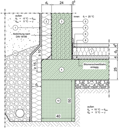 Wärmeleitfähigkeit der Dämmung von Decken gegen Erdreich (Bodenplatten) |