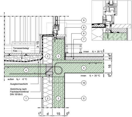 Balkonplatte, Fenster/Tür im oberen Geschoss, Fensterlage in Wandebene