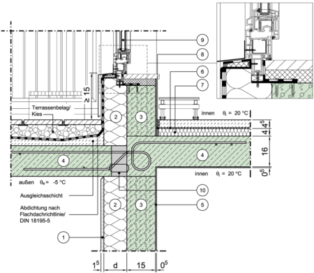 Balkonplatte, Fenster/Tür im oberen Geschoss, Fensterlage in Dämmebene