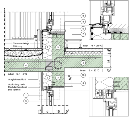 Balkonplatte, Fenster/Tür in beiden Geschossen, Fensterlage in Dämmebene