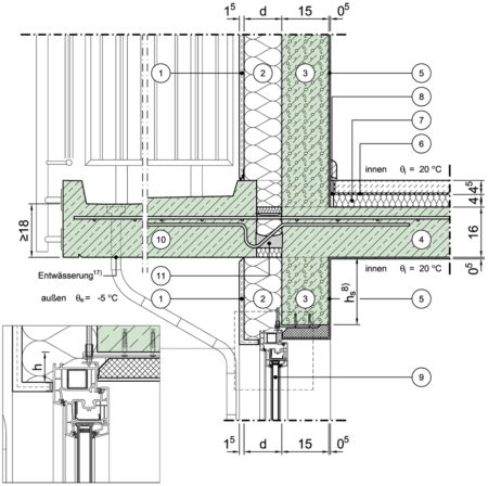 Trogplatte, Fenster/Tür im unteren Geschoss, Fensterlage in Dämmebene