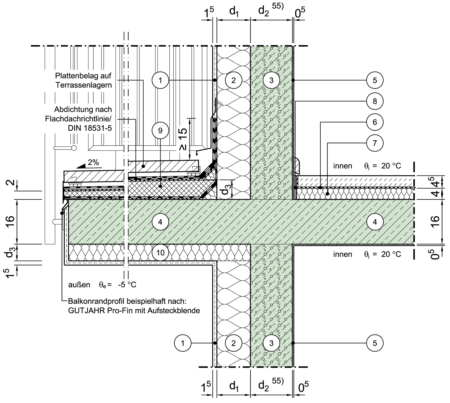 Dicke der Dämmung ober- bzw. unterseitig des Balkons |