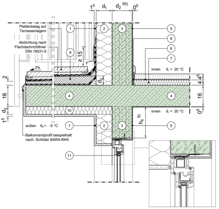 Balkonplatte, Fenster/Tür im unteren Geschoss, Fensterlage in Wandebene