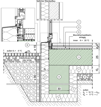 Mit Streifenfundament, perimetergedämmt, Streifenfundament komplett gedämmt, Fenster/Tür in Wandebene