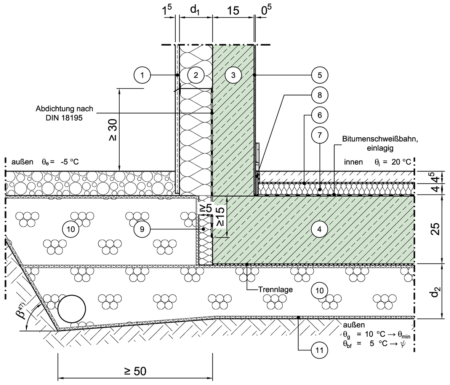 | 10 | Dicke der Dämmung von Decken gegen Erdreich (Bodenplatten) | d | m |