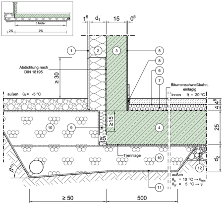 | 9 | Dicke der Dämmung von Decken gegen Erdreich (Bodenplatten) | d | m |