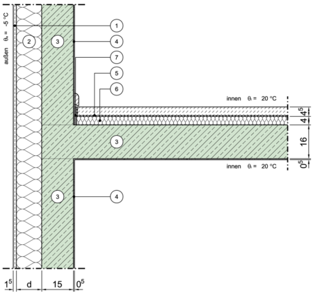 | 2 | Dicke der Dämmschicht der Außenwand | d | m |