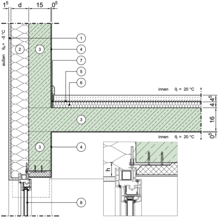 Fenster/Tür im unteren Geschoss, Fensterlage in Dämmebene