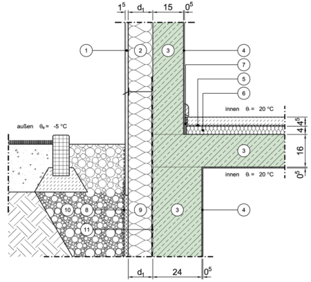 Einschalige Außenwand aus Normalbeton mit Wärmedämmverbundsystem