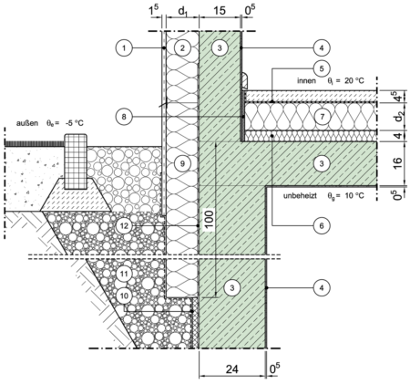 im Sockelbereich, Decke zu unbeheiztem Keller, innenseitig gedämmt