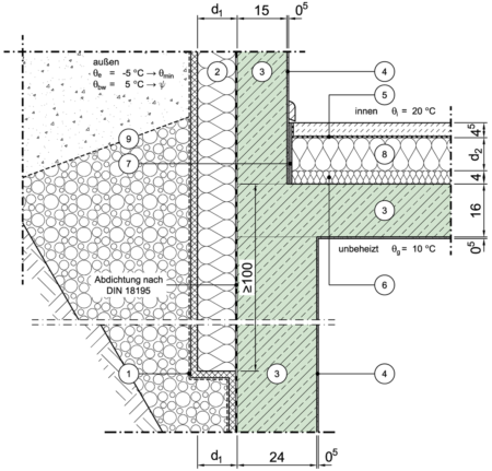 im Erdbereich, Decke zu unbeheiztem Keller, innenseitig gedämmt