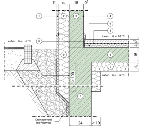 im Sockelbereich, Decke zu Außenluft von unten (z.B. Tiefgarage), außenseitig gedämmt