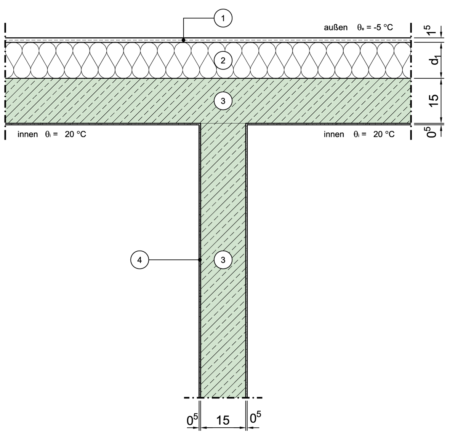 | 3 | Dicke der tragenden Schicht der Außenwand | d | m |