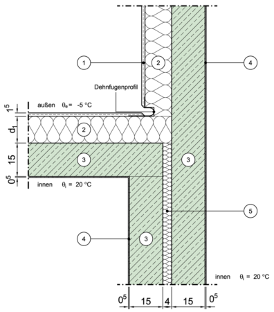 | 2 | Dicke der Dämmschicht der Außenwand | d | m |
