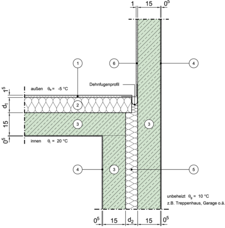 Mit Versatz, Gebäudetrennwand, zu unbeheiztem Raum, Variante 2