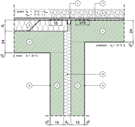Wärmeleitfähigkeit der Dämmung von Wänden zu unbeheizten Raum (horizontal) |