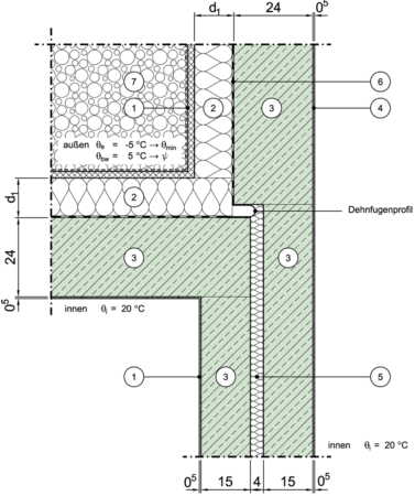 Die längenbezogenen Wärmedurchgskoeffizienten gelten für den Nachweis eines der angrenzenden Gebäude (für eine der beiden Seiten).