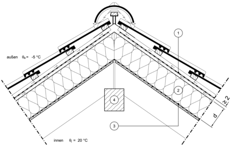 zu beheiztem Dachraum, Pfettendach (35°), mit Aufsparrendämmung