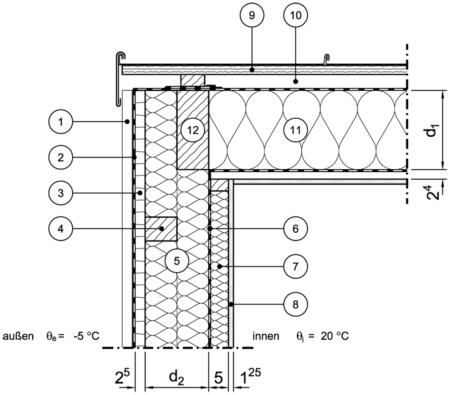 erfüllt nicht die Mindestanforderungen an den Wärmeschutz von Wärmebrücken gemäß DIN 4108 Teil 2!