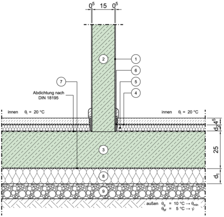 Wärmeleitfähigkeit der Dämmung von Decken gegen Erdreich (Bodenplatten) |