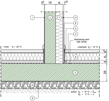 Wärmeleitfähigkeit der Dämmung von Decken gegen Erdreich (Bodenplatten) |