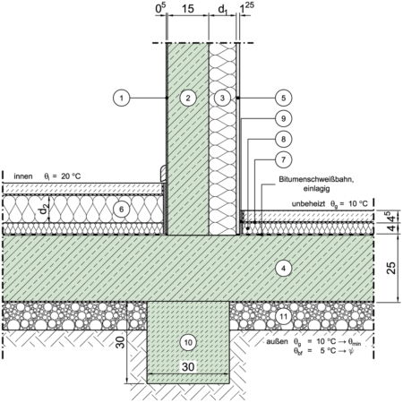 Wärmeleitfähigkeit der Dämmung von Decken gegen Erdreich (Bodenplatten) |