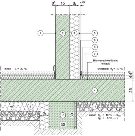 Keller teilbeheizt, perimetergedämmt, Variante 2