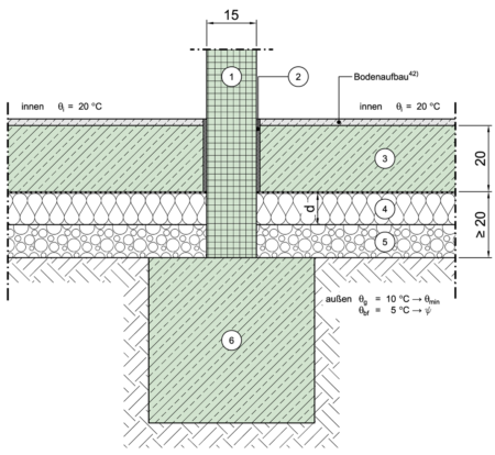 | 4 | Wärmeleitfähigkeit der Dämmung von Decken gegen Erdreich (Bodenplatten) | λ | W/(mK) |