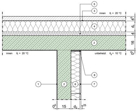 Innenwand einer Decke zu unbeheiztem Raum nach unten