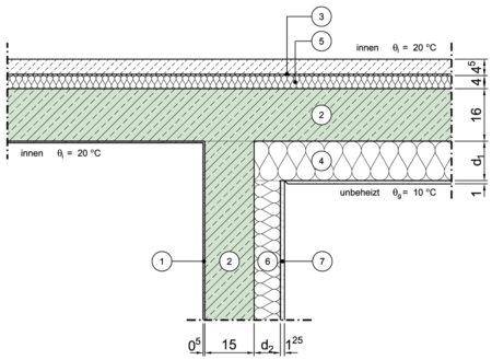 Innenwand einer Decke zu unbeheiztem Raum nach unten