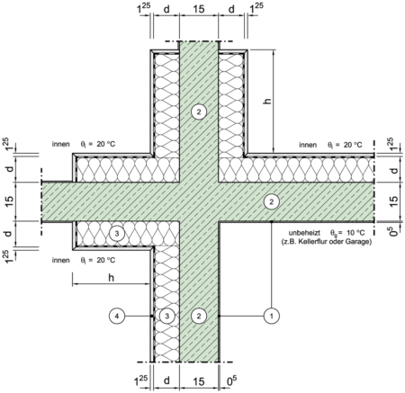| 3 | Dicke der Dämmung von Wänden zu unbeheizten Raum (horizontal) | d | m |
