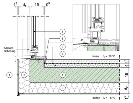 Loggien, Erker, Terrassen, Durchfahrten, Auskragendes Geschoss - oberer Anschluss kragend