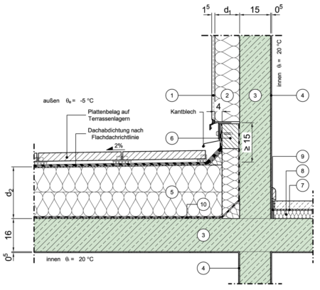 Loggien, Erker, Terrassen, Durchfahrten, Auskragendes Geschoss - unterer Anschluss an aufgehende Wand