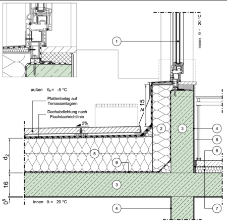 Loggien, Erker, Terrassen, Durchfahrten, Auskragendes Geschoss - unterer Anschluss an aufgehende Wand