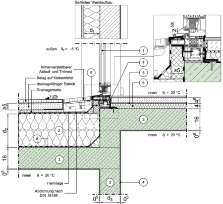 Loggien, Erker, Terrassen, Durchfahrten, Auskragendes Geschoss - unterer Anschluss an aufgehende Wand