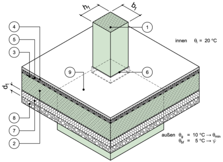 Rechteckstütze, Bodenplatte unterseitig gedämmt
