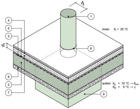 Rundstütze, Bodenplatte oberseitig gedämmt, thermisch optimiert