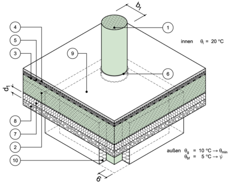 Rundstütze, Bodenplatte unterseitig gedämmt, thermisch optimiert