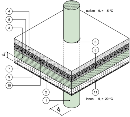 Lokale Durchdringung einer Stahlbetonstütze durch Decke zu Außenluft nach oben (z.B. Parkdecke)