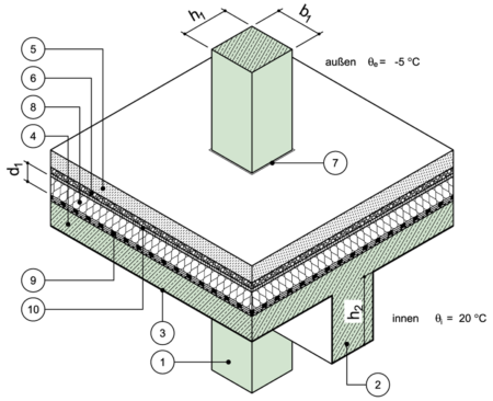 Rechteckstütze, Decke mit Unterzug, oberseitig gedämmt