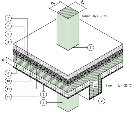 Rechteckstütze, Decke mit Unterzug, unterseitig gedämmt