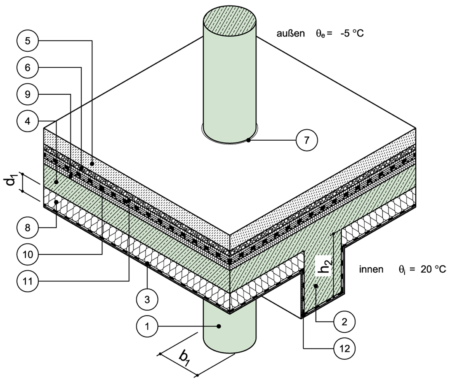 Rundstütze, Decke mit Unterzug, unterseitig gedämmt