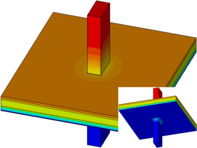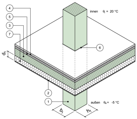 Lokale Durchdringung einer Stahlbetonstütze durch Decke zu Außenluft nach unten (z.B. Tiefgarage)