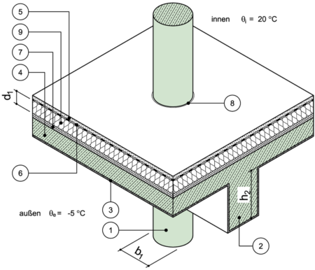 Rundstütze, Decke mit Unterzug, oberseitig gedämmt