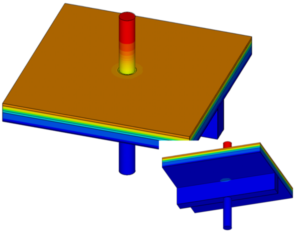 Lokale Durchdringung einer Stahlbetonstütze durch Decke zu Außenluft nach unten (z.B. Tiefgarage)