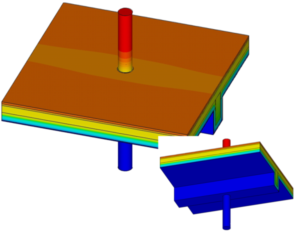 Lokale Durchdringung einer Stahlbetonstütze durch Decke zu Außenluft nach unten (z.B. Tiefgarage)