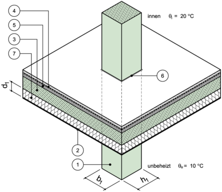 Lokale Durchdringung einer Stahlbetonstütze durch Decke zu unbeheiztem Raum nach unten