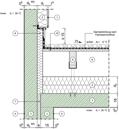 | 5 | Dicke der Dämmung des obersten Gebäudeabschlusses | d | m |